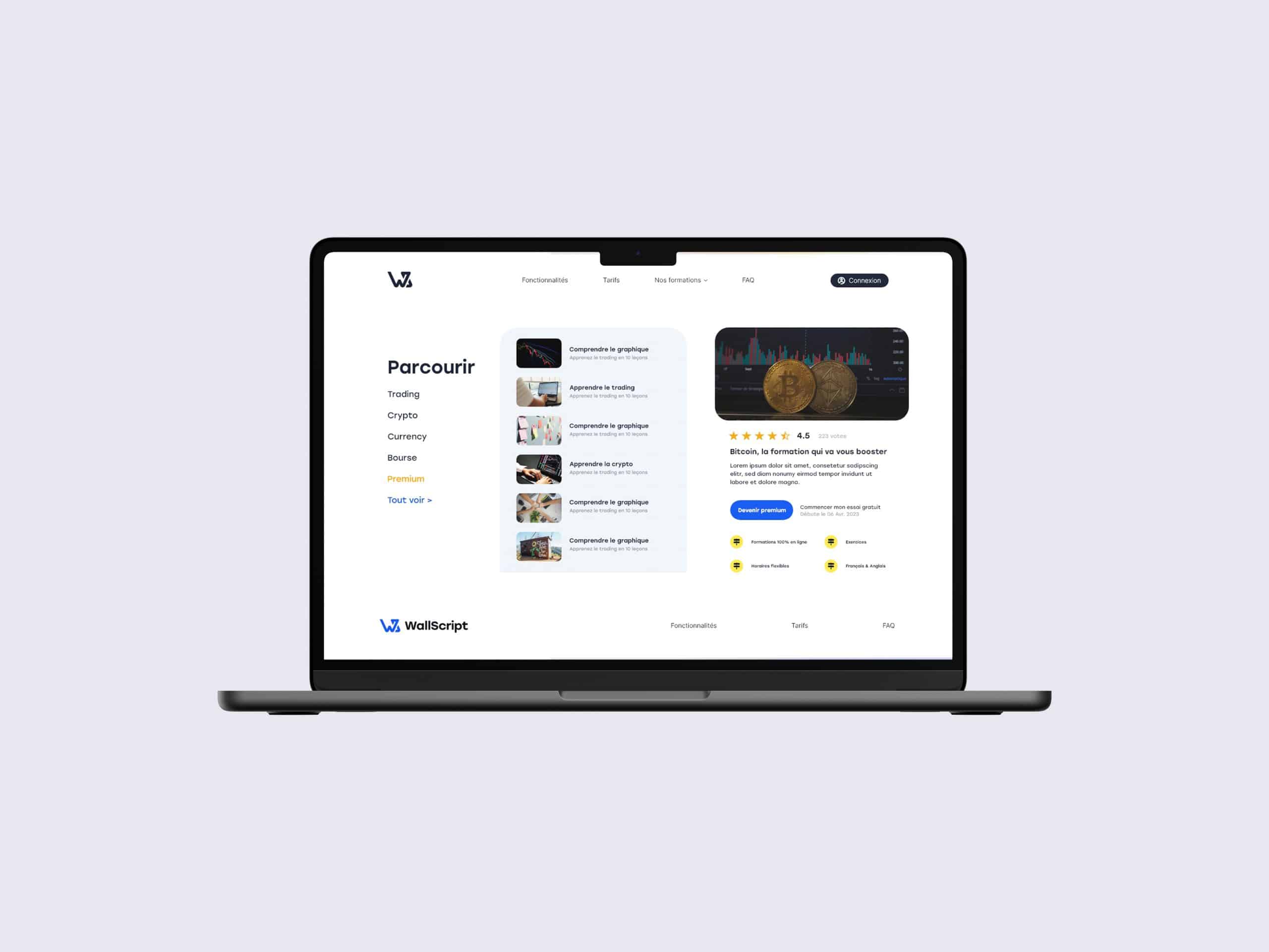 WallScript est une plateforme dédiée à l’apprentissage vulgarisé de la cryptomonnaie et du blockchain. Lancé par un étudiant début 2022, WallScript promet un apprentissage simple, facile et structuré afin d’apprendre les fondamentaux. Le design de WallScript est soigneusement pensé pour offrir une expérience utilisateur fluide et agréable. Grâce à une interface intuitive et des fonctionnalités interactives, les utilisateurs peuvent naviguer facilement à travers les cours, suivre leur progression et tester leurs connaissances. WallScript se distingue par son approche pédagogique moderne, rendant les concepts complexes accessibles à tous. L’offre de WallScript comprend une option gratuite ainsi qu’une offre premium étoffée, offrant des ressources et des outils supplémentaires pour approfondir ses compétences. Les utilisateurs peuvent suivre leur progression, ce qui leur permet de visualiser leurs avancées et de rester motivés tout au long de leur apprentissage.